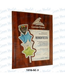 RECONOCIMIENTO DE PARED, BASE SEGUN CATEGORIA SELECCIONADA. GRABADO LÁSER CORTE SEGÚN DISEÑO. IMPRESIÓN GRAVCOLOR.