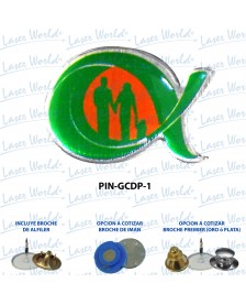 PIN CORTE LASER SEGÚN DISEÑO IMPRESIÓN ACRYLIC WHITE & COLOR (BASE BLANCA), INCLUYE BROCHE ALFILER.