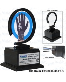 RECONOCIMIENTO TROFEO ACRÍLICO. CORTE CALADO SEGÚN DISEÑO, LÁMINA GRAVOPLAY DOS CARAS UNA CARA GRABADA PERSONALIZADA, LOGOTIPO SÓLIDO SI EL DISEÑO LO PERMITE COMBINADO CON BASE SEGUN CATEGORIA SELECCIONADA, INCLUYE PLACA DE ALUMINIO FOTOGRABADO NEGRO CON LAMINA DE RESPALDO.