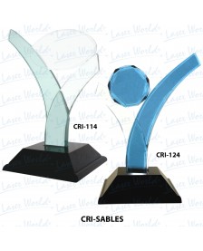 RECONOCIMIENTO Y TROFEO CRISTAL MOD. 114 SABLE GRABADO ESMERILADO UN SABLE. NO COLOR. COMBINADO CON ÓVALO BISELADO PARA LOGOTIPO. GRABADO ESMERILADO, MONTADO EN BASE DE MADERA MDF MOD. 114 PLAQUITA GRABADO LÁSER LÁMINA GRAVOPLAY. CORTE SEGÚN DISEÑO.
