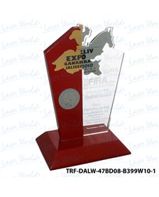 RECONOCIMIENTO TROFEO ACRÍLICO CORTE SEGÚN DISEÑO IMPRESIÓN GRAVCOLOR UNA CARA COMBINADO CON BASE B404.