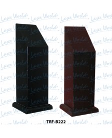 RECONOCIMIENTO Y TROFEO ESCRITORIO MADERA MOD. 222 TORRE CORTE DIAGONAL. FOTOGRABADO NEGRO. LAMINA ALUMINIO CORTE RECTO, SIN PLACA DE RESPALDO, LOGO GRAVOPLAY 3D.